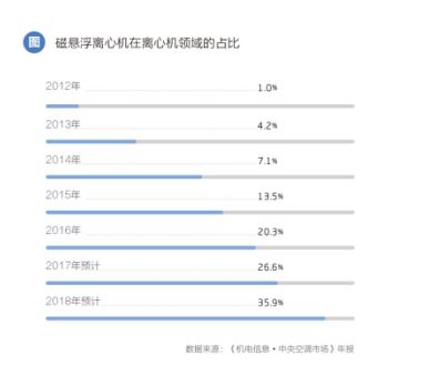 毫hao不bu誇kua張zhang的de講jiang,正zheng是shi憑ping借jie海hai爾er的de一yi己ji之zhi力li,叩kou開kai了le磁ci懸xuan浮fu中zhong央yang空kong調tiao在zai中zhong國guo市shi場chang的de大da門men。可ke喜xi的de是shi,在zai今jin年nian的de中zhong國guo製zhi冷leng展zhan上shang,我wo們men看kan到dao包bao括kuo格ge力li、美的在內超過30家的廠商開始加入到磁懸浮離心機拓展的陣營中。相關機構預測,到2018年底,磁懸浮離心機組在離心機的市場占有率有望接近40%,整體規模達到40億元,未來幾年內,磁懸浮離心機組都將保持60%左右的高增速,迎來徹底的爆發期。