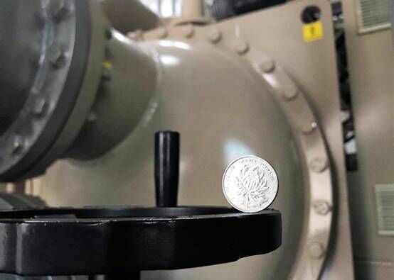 穩定性體驗:立不住VS立得住 為了直觀感受兩個空調機組的運行穩定性差異,講解人員請嘉賓分別在兩個機組上立起1元硬幣。在傳統中央空調的主機上,整個硬幣一直在找平衡點,很難站穩,即使立住,鬆開手後大概不到30秒,也就倒下了,立不住。 同樣的,在海爾磁懸浮空調的主機上,硬幣一立就成,並一直保持立著的狀態紋絲不動。“放在這裏一天都沒事兒。”據機房負責人表示。