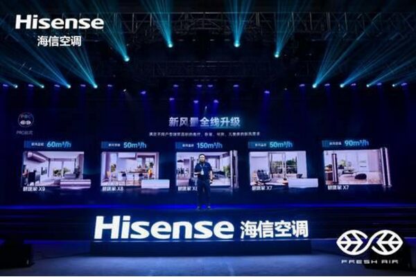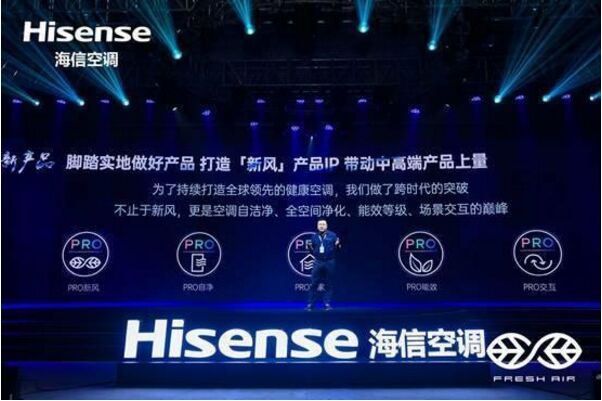 7月22日晚,海信空調夏季全球發布會暨戰略夥伴雲峰會在青島舉行。發布會上,海信新風空調X係產品集體亮相。海信空調副總裁王宏偉表示,隨著2021新冷年開啟,海信空調將施行“四新”策略,並全麵推出PRO版本的X係新風空調,為消費者創造更大價值。