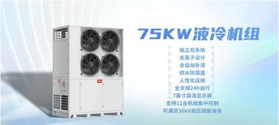 TCL特種空調相關負責人介紹,TCL特種空調儲能溫控75KW液冷機組是TCL空調特種產品線大型液冷係統的首套液冷空調,並在TCL特種空調專機生產線上下線。