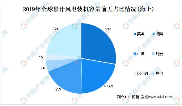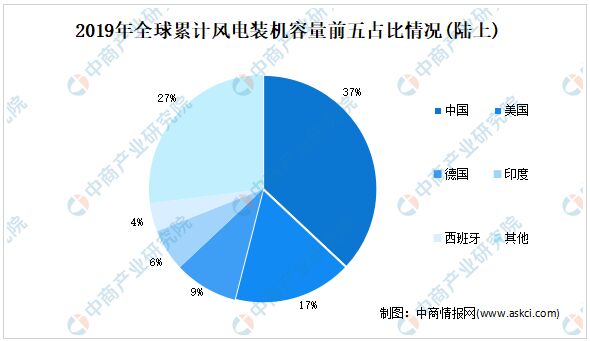 中國是全球風電裝機容量第一大國。數據顯示,截至2019年,中國累計風電裝機容量為236.40吉瓦,占全球累計風電裝機容量的36.34%。其中,陸上累計裝機容量229.56吉瓦,排名全球第一;海上累計裝機容量6.84吉瓦,排名世界第三。