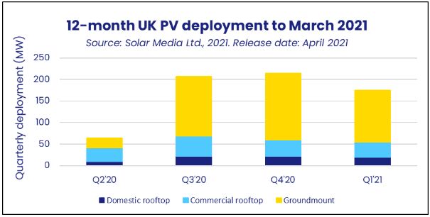 根據英國太陽能協會的數據顯示,英國太陽能產業在第一季度增加了175兆瓦的太陽能發電能力,使該國的累計光伏裝機容量(PV)增至14,000兆瓦以上。