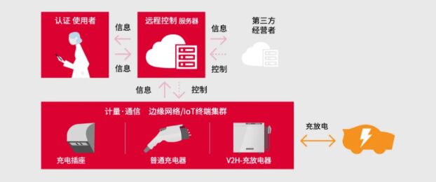 隨著可再生能源逐漸成為社會共識,VPP(虛擬發電廠)係統逐步發揮更大作用。電動汽車的充放電服務對VPP(虛擬發電廠)而言也是不可或缺的重要組成。集中管理的充放電服務主要分為兩個要素,一個是邊緣側,正在開發與電裝的V2H-充放電器等連接的IoT物(wu)聯(lian)網(wang)終(zhong)端(duan),該(gai)終(zhong)端(duan)將(jiang)具(ju)備(bei)電(dian)力(li)計(ji)算(suan)和(he)遠(yuan)程(cheng)控(kong)製(zhi)的(de)功(gong)能(neng)。另(ling)一(yi)個(ge)是(shi)服(fu)務(wu)器(qi)端(duan),將(jiang)來(lai)自(zi)多(duo)個(ge)終(zhong)端(duan)的(de)信(xin)息(xi)進(jin)行(xing)彙(hui)總(zong)和(he)分(fen)析(xi),並(bing)為(wei)每(mei)個(ge)充(chong)放(fang)電(dian)器(qi)發(fa)出(chu)恰(qia)當(dang)的(de)充(chong)電(dian)和(he)放(fang)電(dian)指(zhi)令(ling)。