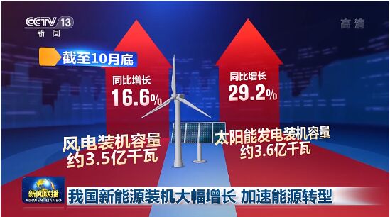 截至10月底,全國累計發電裝機容量約25億千瓦,同比增長8.3%。其中,風電、太陽能發電裝機容量分別約3.5億千瓦和3.6億千瓦,分別同比增長16.6%和29.2%,保持快速增長。