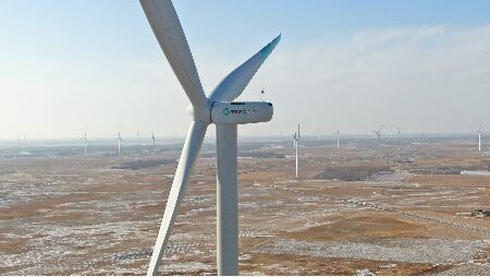 在吉林省白城市通榆縣境內,一排排風機緩緩轉動,由中國綠發建設的通榆二期10萬千瓦風電項目於去年12月完成啟動試運行,正式並網發電。盡管存在大風、霜凍等天氣影響,風電場依然在155天內完成全部工程建設,實現當年核準、當年開工、當年建成、當年投運。據測算,風電場投產後每年可提供2.99億千瓦時清潔電力,節約標準煤3.68萬噸,減少二氧化碳排放29.84萬噸。