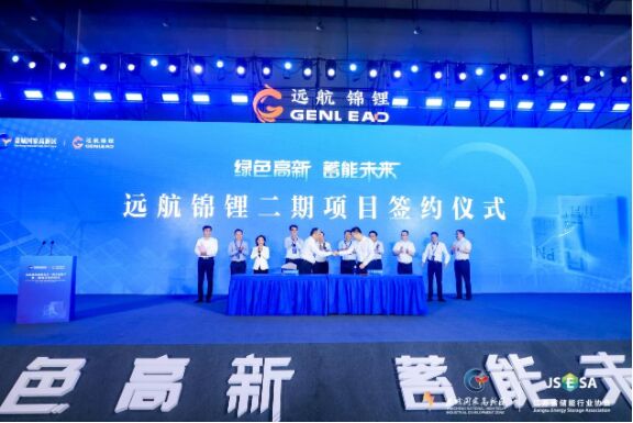 在現場領導和嘉賓的見證下,遠航錦鋰儲能電芯一期項目正式全麵投產。鹽城高新區黨工委副書記、管委會主任高翔與遠航錦鋰公司代表走上台前,進行了項目二期簽約,新增投資50億元。