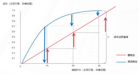 在應用場合方麵,液流電池正在與鋰離子電池形成差異化競爭,主要在4小時及以上,百兆瓦時以上的容量儲能場合進行推廣。相較平均儲能時長2小時的鋰電池,鋅鐵液流電池選取了鋅和鐵兩種儲備豐富、成本極低、價格波動平穩的金屬進行配對,不僅做到了電池產品本征安全,不燃不爆,還因為原材料儲備豐富、易獲取,可以通過規模化量產來逐步降低液流電池的度電成本,提升配儲的使用率。更難得的是,鋅鐵液流電池可以實現4-8小時儲能時長,使用壽命超過20年,循環次數超過20000次等優勢,更適合未來大量使用新能源的電網。