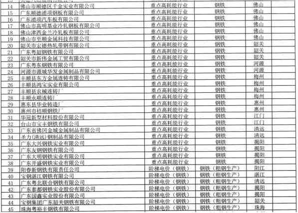 6月22日,廣東省工業和信息化廳發布《關於下達2020年廣東省節能監察任務的通知》(以下簡稱“《通知》”)。《通知》稱,2020年廣東省安排平板玻璃、鋼鐵(不含粗鋼生產)行業強製性單位產品能耗限額標準執行情況專項監察38家,鋼鐵(粗鋼生產)、水泥企業階梯電價政策執行專項監察168家,需在10月30日前完成。其中包括32家鋼鐵企業,具體整理如下: