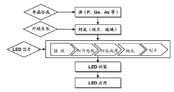 近年來,隨著LED技術發展,半導體照明以其突出的節能和環保特性正在照明領域掀起第二次革命。LED是一種能夠將電能轉化為光能的半導體器件,具有節能、環保、安全、壽命長、防震、便於智能控製等特點。20世紀90年代,隨著材料技術的發展,藍、綠和基於藍光的白光LED被研製出來並逐步產業化。隨著技術進步,LED 發光效率不斷提高,LED照明應用領域越來越廣,目前已被廣泛應用於戶外照明、景觀照明、室內照明和特種照明等領域。 一、照明行業轉型 LED受寵 Light Emitting Diode (LED),即發光二極管,是一種固態的半導體器件,它可以直接將電轉化為光。LED 照明始於20世紀60年代,隨著技術的快速進步,LED的發光效率已經超過了熒光燈。因此,LED是繼白熾燈、熒光燈、節能燈之後第四次人類照明方式的革命。LED 具有節能、環保、耗電量少、壽命長、色彩豐富、耐震動、可控性強等特點,廣泛應用於家用電器、儀器儀表、消費電子、室內照明、景觀照明等多個領域。近年來,由於各國節能意識增強、LED技術逐漸成熟以及LED芯片成本快速下降所帶來的大規模應用等原因,全球範圍內照明行業正在從傳統照明技術向LED轉型。 二、LED產業鏈:上遊利潤高 LED 產業鏈包括外延片、芯片、封裝和應用,其中外延和芯片是關鍵。 上遊是先從單晶作為成長用的基板,再利用各種的外延生長法(如LPE、MOCVD、MBE 等) zuochengwaiyanpian,bazhexiewaiyanpiansonggeizhongyouzhizuodianji,jinxingpingtaishikehouqiegewaiyanpian,zuihouzaijiangwaiyanpianbengliechengdankexinpian,zhongyouzaibaxinpianjiaogeixiayoufengzhuang,fengzhuangwanchengdeLED 成品依各種市場需求包裝成各種應用產品,如指示燈、數字顯示器、點矩陣顯示器、紅外線發射器等產品。 LED 產品中外延片和芯片是關鍵,產品利潤占比較高。LED 芯片的生產過程就是把外延片生產成單個LED 芯片的過程,這一過程主要是由金屬蒸鍍、金屬電極製作、襯底減薄、拋光、劃片等一係列集成電路製造工藝組成,最後再經過測試和篩選, 根據芯片的性能進行分類。LED 芯片生產技術主要體現在芯片製造這一係列流程上的工藝技術,工藝技術的高低直接影響到芯片的質量和成品率。 附圖:LED產業鏈圖