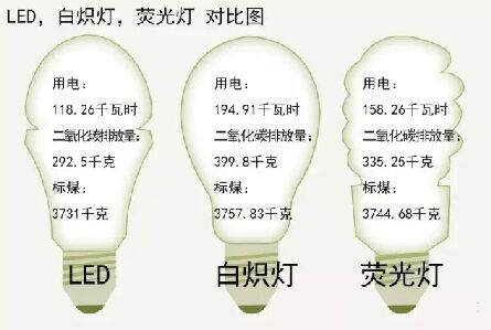 半導體(LED)照明被稱作固態照明,是繼白熾燈、熒光燈之後的新一次光源革命。按平均每天照明6小時計算,一盞LED照明燈與相同照度的白熾燈相比,一年可節約用電約76.65千瓦時,減少二氧化碳排放量107.3千克,節約標煤26.83千克;與相同照度熒光燈相比,一年可節約用電約40千瓦時,減排二氧化碳42.75千克,節約標煤13.68千克。