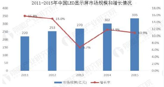 我國LED顯示屏產業的技術基礎和水平是相當先進的,主要產品和關鍵技術與國際同行業的先進水平能夠大致保持一致。LED器件技術和性能不斷提高,電子技術發展日新月異,這為LED顯示屏產品的技術深化和提高帶來良好的基礎。同時LED顯示在社會生活的各個領域得到了廣泛的應用,半導體照明產業的發展更為LED顯示產業帶來良好契機,因此,LED顯示市場發展前景樂觀。 LED產業鏈主要包括原材料、設備,上遊芯片製造,中遊LED封裝以及下遊LED應用。而下遊LED應用又主要分為LED照明,LED顯示屏以及LED背光應用等。LED應用是整個產業鏈中能夠帶來較高附加價值的重要一環。 目前,LEDxiayouyingyongzhongshichangguimozuidadeshizhaominglingyu,qicishibeiguangyingyonghexianshiping。xianshipingyingyongguimorengweichiyigexiangduiwendingkuaisuzengchangqushi,youqishisuizhexiaojianjuLED顯示屏技術的成熟,LED顯示屏應用將逐漸從室外超大尺寸顯示應用走向室內,應用領域將會顯著拓寬,預計未來幾年將會保持非常高速的增長速度,從而使得LED顯示屏在整個下遊應用產業鏈中的占比逐漸提升。 據前瞻產業研究院《中國LED行業市場前瞻與投資戰略規劃分析報告》數據顯示,2015年全國LED顯示應用行業市場銷售規模較2014年度有新的增長,全年市場總量預計將達335億元,增長幅度在10%左右。