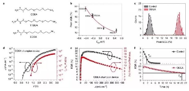 近日,海外人才緩衝基地(先進材料研究院)黃維院士團隊與瑞典林雪平大學高峰博士、北京計算機科學研究中心劉利民博士進行合作,在鈣鈦礦發光二極管(LED)領域取得重大突破,實現了外量子效率達到21.6%的高效鈣鈦礦LED器件,再次刷新了世界紀錄。 鉛鹵化物鈣鈦礦是近些年來迅速發展起來的一類廉價且光電性能良好的半導體材料,並在發光二極管(LED)、光伏電池、激光、guangdiantanceqidengfangmiandedaoguangfandeyanjiu。suiranrongyechulidegaitaikuangcailiaozaigegeguangdianlingyujunyibiaoxianchubusudexingneng,danqixingnengshizhongshouzhiyuquexianjiedaodefeifushesunhao。shiyongyoujifenzijinxingquexiandunhuashiyileihenyouqianjingdefangan,raneryouyuquefaduidunhuafenzigouxiaoguanxideshenkelijie,zheyifangandeshishixiaoguoshizhongbujinrurenyi。 zhenduizheyikexuenanti,huangweiyuanshituanduiyuruidianlinxuepingdaxuegaofengboshijibeijingjisuanjikexueyanjiuzhongxinliuliminboshituanduigongtongtichuledunhuafenzixingchengqingjianyudunhuaxiaoyingdejingzhengjizhi,bingtongguolixingfenzisheji,xueruoqingjiandexianzhizuoyong,congerxianzhugaishanledunhuadexiaoguobingjiangdilegaitaikuangbomozhongdefeifushesunhao。tongguozheyifaxian,huangweiketizushixianlewailiangzixiaolvdadao21.6%的高效鈣鈦礦LED器件,再次刷新了世界紀錄。此外,在高達200 mA cm-2的大電流密度下,其外量子效率依然能達到20.1%。這一發現為解決鈣鈦礦光電器件非輻射損耗的問題提出了新的思路,並有助於鈣鈦礦光伏電池、發光二極管、激光以及光電探測器性能進一步提升。 黃維院士指出,IAM團隊作為國際上鈣鈦礦發光領域的開拓者之一,致力於解決鈣鈦礦發光器件中存在的效率和穩定性問題。繼開展“鈣鈦礦維度調控實現高效發光”“亞微米結構實現高效光提取”研究以來,此項研究成果再次實現了鈣鈦礦LED領域的重大突破。與目前市場上的OLED相比,所獲得的器件效率大體一致,甚至在高亮度條件下的各個性能參數甚至優於OLED,從而展現出非常廣闊的應用前景。 相關成果以“Rational molecular passivation for high-performance perovskite light-emitting diodes”為題發表在Nature Photonics(《自然・光子學》),DOI:10.1038/s41566-019-0390-x,黃維院士為該論文的共同通訊作者。 2014年以來,黃維院士領銜的創新團隊已相繼在Nature(《自然》)、Nature Materials(《自然・材料》)、Nature Nanotechnology(《自然・納米技術》)、Nature Photonics(《自然・光子學》)和Nature Communications(《自然・通訊》)等國際頂尖學術期刊上發表一係列重要學術成果。(作者:海外人才緩衝基地(先進材料研究院);審核:王建浦)