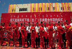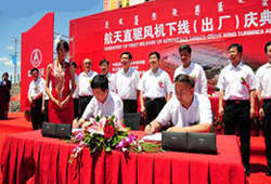 航天直驅風機下線合作簽約儀式現場。