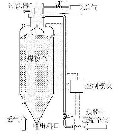 目前國內多數從業廠商缺乏煤粉存儲安全知識,在設計、安裝煤粉儲存塔(罐) 時存在重大的安全隱患,如將煤粉儲塔(罐) 置zhi於yu全quan封feng閉bi建jian築zhu物wu內nei,有you發fa生sheng自zi燃ran甚shen至zhi爆bao炸zha的de危wei險xian。為wei了le保bao證zheng煤mei粉fen工gong業ye鍋guo爐lu行xing業ye健jian康kang有you序xu發fa展zhan,應ying圍wei繞rao在zai密mi閉bi空kong間jian內nei煤mei粉fen的de自zi燃ran發fa火huo特te性xing開kai展zhan研yan究jiu,為wei形xing成cheng煤mei粉fen儲chu罐guan完wan整zheng的de自zi主zhu安an全quan技ji術shu規gui範fan提ti供gong理li論lun依yi據ju。 1.3濃相煤粉輸送技術 供料器是煤粉工業鍋爐中最為主要的設備,具備無脈動、高固氣比連續穩定地給燃燒器供料的功能。供料不穩定,極易發生爐膛爆燃事故,為了保證鍋爐穩定運行,供料偏差不得超過±3% 。近年來,國內自主煤粉供料技術主要有3類: ①借鑒電站鍋爐係統的供料設備,如葉輪給粉機; ②粉體輸送設備,如(改良) 螺旋輸送機; ③引進國外的技術產品,如氣錐結合鎖氣閥。前2類均為稀相供料,固(煤粉) 氣(空氣) 比一般小於 0.3 kg/m3,初始點火困難,不適合應用於煤粉工業鍋爐領域。隻有第3類為濃相供料,具備快速著火的條件,可應用於煤粉工業鍋爐領域。 隨著對煤粉流動特性認識的不斷深入,供料器從螺旋結構形式升級為主動二次活化式。主動供料器的形式包括“星鳥”耦合文丘裏(圖2) 、duokongshuangzhuanpanjizhuanzichengdeng。meifenjingguodibuxingxingxieliaofazhouqixingdixierudaozhongjianhuanchongcang,zhongjianhuanchongcangzhuidoubimianduodiantongqi,shimeifenxiqikuaisuhuohua,liudongxingxianzhuzengqiang。midufenbujunyidemeifenliu,yikaozhonglijingzhuidouchukoujinru“星鳥”耦(ou)合(he)文(wen)丘(qiu)裏(li)閥(fa)組(zu)。閥(fa)組(zu)連(lian)續(xu)均(jun)勻(yun)排(pai)出(chu)的(de)煤(mei)粉(fen)落(luo)入(ru)高(gao)速(su)引(yin)射(she)流(liu)混(hun)合(he)器(qi)組(zu)件(jian),與(yu)一(yi)次(ci)風(feng)瞬(shun)間(jian)完(wan)成(cheng)散(san)射(she)混(hun)合(he),形(xing)成(cheng)高(gao)濃(nong)度(du)風(feng)粉(fen)流(liu)。風(feng)粉(fen)流(liu)依(yi)靠(kao)一(yi)次(ci)風(feng)機(ji)提(ti)供(gong)的(de)動(dong)力(li),經(jing)風(feng)粉(fen)管(guan)道(dao)源(yuan)源(yuan)不(bu)斷(duan)濃(nong)相(xiang)送(song)出(chu),進(jin)入(ru)下(xia)遊(you)燃(ran)燒(shao)器(qi)。“星鳥”耦合文丘裏具備二次活化、均勻連續喂料以及引射流混合發送的特點,試驗表明在供料速率2.4~4.0t/h 的工況下,“星鳥”耦合文丘裏供料偏差為±1% 。