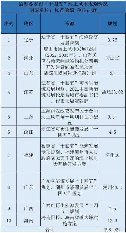 沿海各省市海上風電“十四五”規劃陸續出爐。