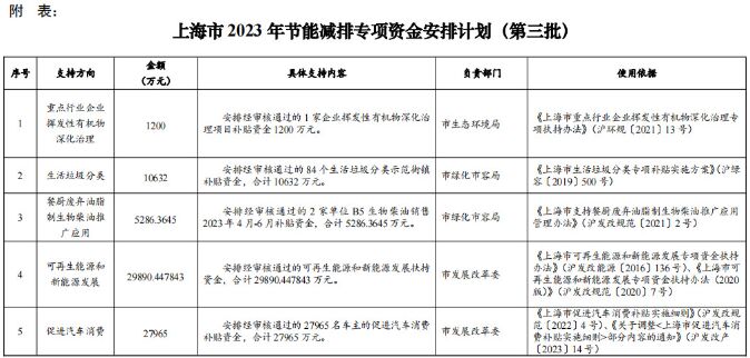 附表:上海市2023年節能減排專項資金安排計劃(第三批)