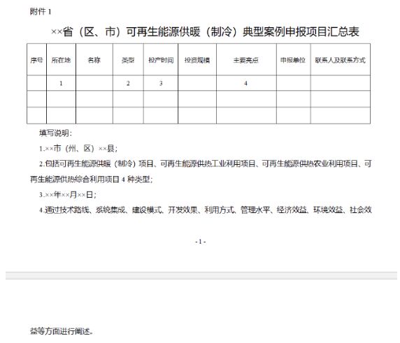 1.××省(區、市)可再生能源供暖(製冷)典型案例申報項目彙總表