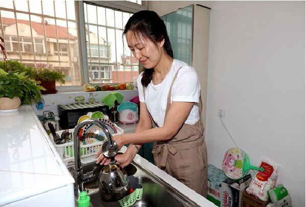 圖為被采訪居民用南水北調來的自來水為記者們燒水泡茶