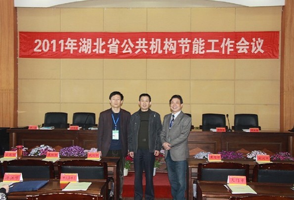會議期間大明燈業營銷總監文純陽(右)與省機關事務管理局姚義全處長(中)、省節能公司李堂(左)在一起合影