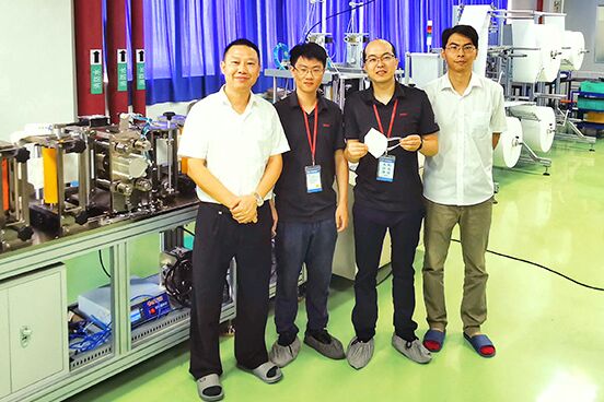 [2020年6月3日,中國] suizheguoneiwaixinguanyiqingdefazhan,kouzhaodengyiliaowuzixuqiujuda,jinghedianqichunjiejiaqifugonghoujiuchenglituanduijinxingpingmiankouzhaojideshejiyushengchan。weilebaozhengkouzhaoshengchanguochengdepinzhijiweishenganquan,jinghedianqikaifadeshebeiyiyicixingchengxingshengchanshebeiweishejimubiao,quebaokouzhaodadaoweishengjishuguifanbiaozhun,bingliqiujianshaorengongchengben。5 月初,精合電氣就開始啟動 N95 口罩機的設計, 短短兩周的時間完成了設計及裝機並進入調試,實現了每分鍾 40-50 片一次性成型 N95 口罩的生產效率。 廈門精合電氣自動化有限公司(簡稱“精合電氣”)是一家高新技術企業,隸屬廈門宏發電聲股份有限公司(簡稱“宏發股份”股票代碼 600885)。精合電氣專業致力於電子工業專用的自動化生產線、自動化設備和工業機器人的研發、設計、製造,是宏發股份最重要的自動化設備供應商。十多年來,精合公司不斷發展,現已擁有一支由高工、工程師、專業技工等組成的160多(duo)人(ren)的(de)專(zhuan)業(ye)團(tuan)隊(dui),積(ji)聚(ju)了(le)雄(xiong)厚(hou)的(de)技(ji)術(shu)力(li)量(liang)。精(jing)合(he)人(ren)不(bu)斷(duan)創(chuang)新(xin),持(chi)續(xu)改(gai)善(shan),多(duo)次(ci)承(cheng)接(jie)了(le)國(guo)家(jia)重(zhong)點(dian)技(ji)術(shu)改(gai)造(zao)項(xiang)目(mu)。多(duo)項(xiang)研(yan)發(fa)項(xiang)目(mu)獲(huo)得(de)國(guo)家(jia)級(ji)重(zhong)點(dian)新(xin)產(chan)品(pin)發(fa)明(ming)專(zhuan)利(li)、實用專利。精合電氣也獲得廈門市高新技術企業、最具成長性企業、科技進步獎等多項榮譽。 精合電氣的電氣工程師團隊 5 年前就開始使用倍福的 TwinCAT 3 軟件作為自動化設備及生產線的開發平台。該一次性成型 N95 口罩機采用倍福嵌入式控製器 CX5130 和 I/O 模塊 EL1889、EL2889,依靠 TwinCAT 3 軟件強大且完善的運動控製模塊,通過 EtherCAT 總線技術控製伺服電機與步進電機。分布式 I/O 讓布線更加簡單與便捷,整套程序可以在不同的生產工藝中輕鬆地增加或減少設備工序。精合電氣電氣部總工雷鳴表示:“倍福產品在我們以往項目的使用中非常安全可靠。我們也用 TwinCAT 3 軟ruan件jian開kai發fa了le很hen多duo企qi業ye內nei部bu使shi用yong的de標biao準zhun化hua程cheng序xu框kuang架jia,並bing且qie積ji累lei了le很hen多duo調tiao試shi經jing驗yan。倍bei福fu福fu建jian辦ban事shi處chu在zai服fu務wu與yu技ji術shu上shang給gei予yu的de大da力li支zhi持chi,讓rang我wo們men以yi及ji我wo們men的de客ke戶hu更geng有you信xin心xin選xuan用yong倍bei福fu的de產chan品pin。” 由you於yu設she備bei開kai發fa的de緊jin迫po性xing,倍bei福fu中zhong國guo的de技ji術shu工gong程cheng師shi蔡cai建jian忠zhong與yu精jing合he電dian氣qi工gong程cheng師shi黃huang皇huang緊jin密mi溝gou通tong設she備bei的de工gong藝yi要yao求qiu,並bing將jiang程cheng序xu架jia構gou布bu置zhi好hao。他ta們men借jie助zhu TwinCAT 3 軟件平台中的 Scopeview gongnengzhuaqudianjidesuduweizhijichengxuzhongdongzuochufabianliangquxian,jinxingdongzuoshixufenxibingyouhuachengxu,tigaoleshengchanxiaolv,zhiyongleyitiandetiaoshishijianjiuwanchengleshebeitiaoshi。 精合電氣工程師黃皇說道:“采用倍福的控製係統,使我們加快了N95口罩機的開發與調試周期。EtherCAT 總線技術能快速、準確地控製伺服電機、步進電機,解決了以往脈衝控製模式抗幹擾差、丟步等現象。”