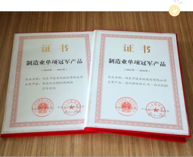 近日雙良收到一份特殊"禮物" 兩本中國製造業單項冠軍產品證書 由工信部、中國工業經濟聯合會共同頒發 對中國製造企業來說這是至高的榮譽