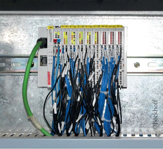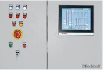 控製櫃中的嵌入式控製器與用作人機界麵的倍福控製麵板 CP2912 相連