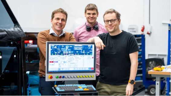 包括 CEO Staffan Nordlinder(左)和軟件工程師 Jakob Sagatowski(右)在內的 DP Patterning工程師們在開發DPP技術的自動化技術期間,與瑞典倍福的運動控製產品專家 Marcus Aldrin(中)展開了密切合作。