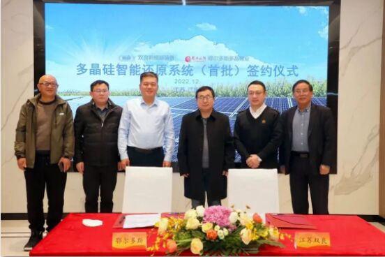 近日,為推進產業數字化,江蘇雙良新能源裝備有限公司(簡稱雙良新能源)與內蒙古鄂爾多斯多晶矽業有限公司(簡稱鄂爾多斯多晶矽業)達成首批多晶矽智能還原係統合作,雙方在“智能還原控製係統開發總結大會”上進行了簽約,鄂爾多斯多晶矽業總經理李敏、雙良新能源總經理王法根、雙良混沌能源總經理王玨等參加了本次會議。