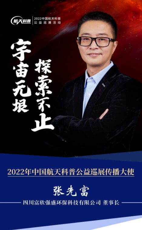 2022年11月30日,四川富欣強盛環保科技有限公司董事長張先富受邀為2022年中國航天科普公益巡展傳播大使,在中央電視塔中國航天科普主題展區參加航天科普公益巡展活動。