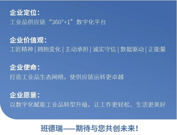 作為立足於中國市場的工業用品數字供應鏈服務平台,班德瑞專注於環保MRO(維護、維修、運行)領域已十年曆史,我們堅持不斷創新、下沉客戶的理念,先後探索出環保行業多場景工業品解決方案;womenqianghuagongyinglianjianshe,yishuzihuajishugaishankehutiyan,quanmiantishengqiyedecaigouxiaolv,jiangdiqiyedecaigouchengben,weiqiyeshengchanyunyingtigongsuoxudegezhongfuliaoheyihaopin。