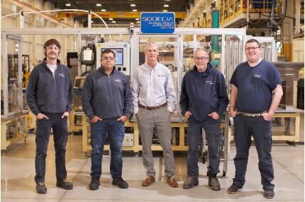 在位於安大略省倫敦的 Sodecia 全球技術和自動化中心(左起):Jessy Underhill、Danilo Abijaude Silva、倍福加拿大分公司的 Dean Herron、Ervin Pfaff 和 Chris Drees