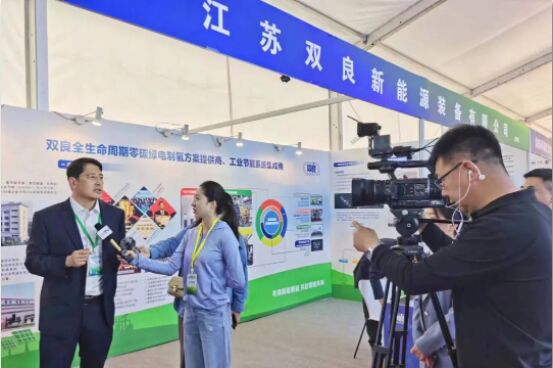 開幕式結束後,內蒙古自治區副主席楊進,政協副主席、工商聯主席安潤生,工商聯副主席史聖平一行來到雙良展台並與集團總裁馬培林、新能源公司副總經理趙雲、大客戶中心副總經理王慶就內蒙氫能發展進行深入交流。