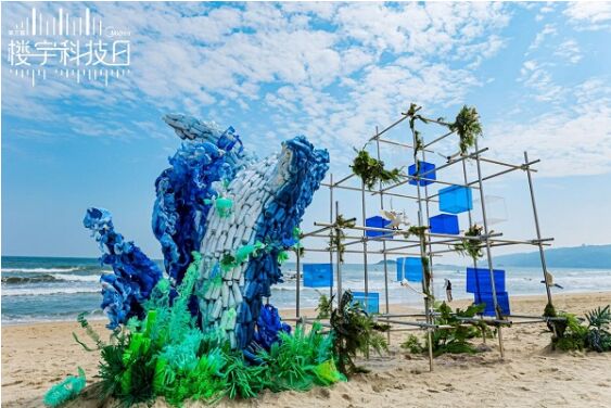 4年後,中國惠州雙月灣,又一頭渾身塑料瓶的藍鯨引起了人們的注意。再生環保藝術家創作了這個裝置,通過它再次提醒人們環境汙染對海洋生態的危害。