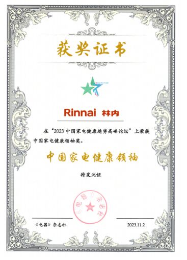 11月2日,林內在“2023中國家電健康趨勢高峰論壇”上,憑健康理念和產品斬獲本屆高峰論壇的“中國家電健康領袖獎”,同時,還榮獲了采暖、熱水器和廚電領域的“中國家電健康之星”獎項。該論壇由人民日報健康客戶端、健康時報社主辦,中國家用電器協會支持,《電器》雜誌社承辦。