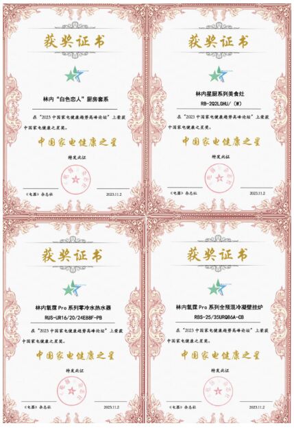 林內榮獲采暖、熱水器和廚電領域的“中國家電健康之星”獎項