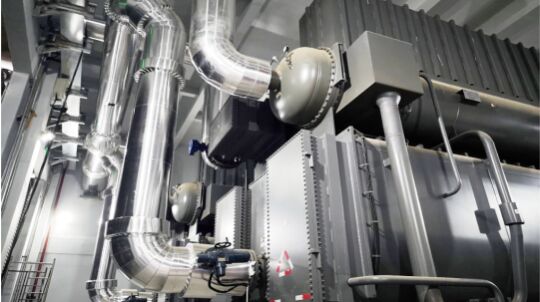 長輸中繼能源站大溫差項目,采用16台60MW溴化鋰吸收式換熱機組降低零次側熱網回水溫度,熱網回水利用電廠或工業餘熱進行加熱,一個采暖期餘熱供熱可實現二氧化碳減排32.75萬噸。
