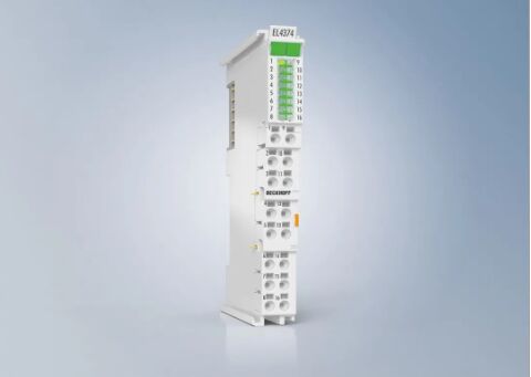 EtherCAT 端子模塊 EL4374 將可參數化的模擬量輸入和輸出結合在一個緊湊的、帶 LED 信號指示燈的高密度外殼中