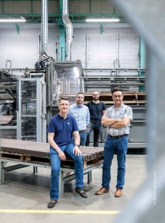 回收與自動化專家(從左至右):Govaerts 公司總經理 Eddy Govaerts,比利時倍福分公司技術支持工程師 Philippe Hénin,Govaerts 公司 Wouter Thieren 以及倍福比利時分公司總經理 Patrick Gielis