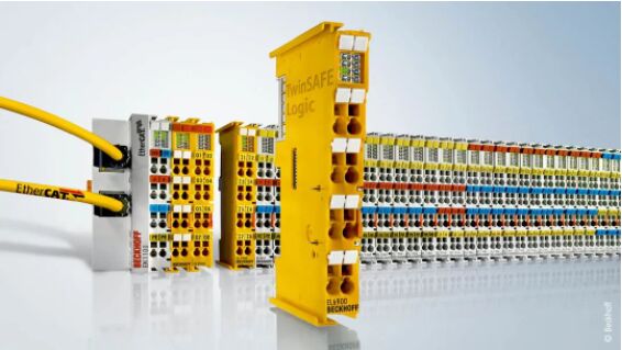 OMR 使用一係列 EtherCAT 端子模塊和黃色的 TwinSAFE 模塊集成安全功能