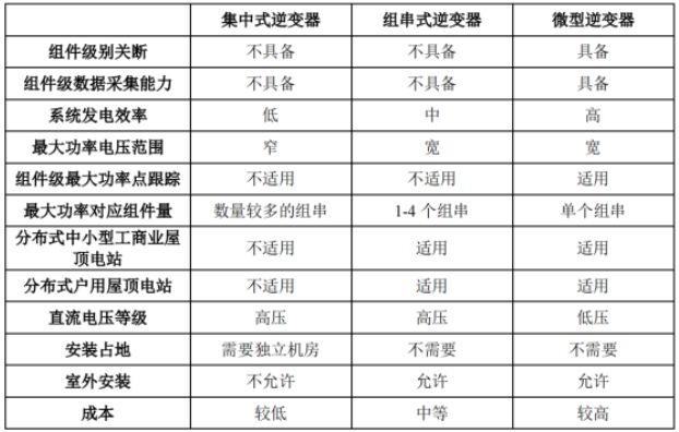 集中式、組串式、分布式光伏逆變器技術指標對比