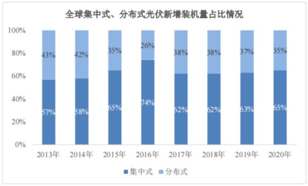 全球集中式、分布式光伏新增裝機量占比情況,據來源:IEA、方正證券研究所、天風證券