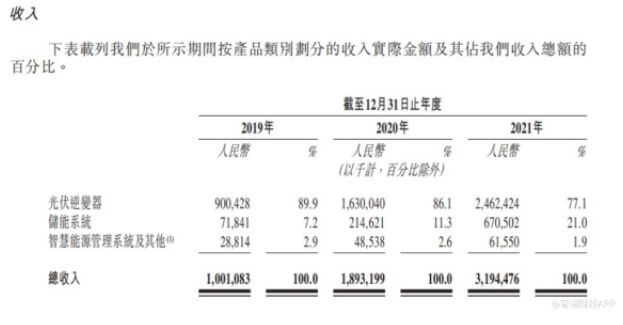 此外,根據分布式光伏逆變器龍頭企業古瑞瓦特招股書數據顯示,2019-2021年儲能係統營收分別為0.72億、2.15億、6.7億,均呈高速增長態勢,儲能係統營收占比也越來越高。