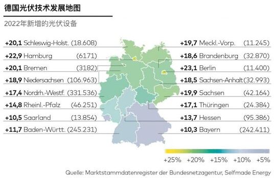 石荷州、柏林、萊法州和下薩克森州也紛紛效仿,並規定在新建的非住宅建築上安裝光伏係統。太陽能專家Rosengart稱,這些規定可能會在2023年再次推動擴大。