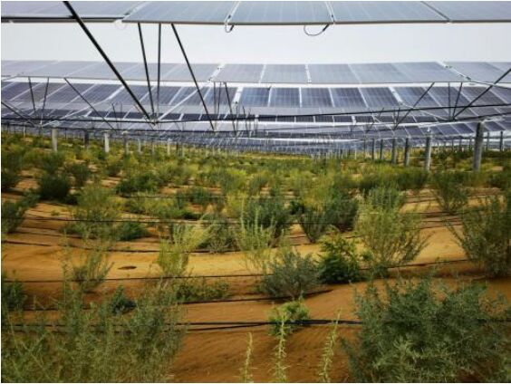 利好頻出,內蒙古鄂爾多斯庫布其治沙企業億利資源集團迎來了新機遇。立足於35年治理庫布其沙漠累積的沙戈荒風光土地資源,億利創新了“光伏與治沙生態融合、光伏與低碳產業融合、光伏與現代農業融合”的立體光伏治沙模式,逐步在內蒙古庫布其、甘肅騰格裏建設億利陽光穀低碳產業園,構建“上遊綠電、中遊綠氫、下遊綠色新材料產品”的沙漠光氫低碳新材料產業布局,創新了“板上雙層發電、板下雙層種植、板間雙層養殖”的立體生態光伏治沙產業鏈條。通過雙玻組件實現板上雙麵發電,可增加發電量5-10% ;板下種植優質牧草和藥材等作物,實現立體生態種植;板間運用先養雞後養羊的“畜禽草耦合”治沙技術實施養殖糞便還田治沙改土,實現了“板上發電、板下種植、板間養殖、治沙改土、鄉村振興”的“光伏+”多重效益。