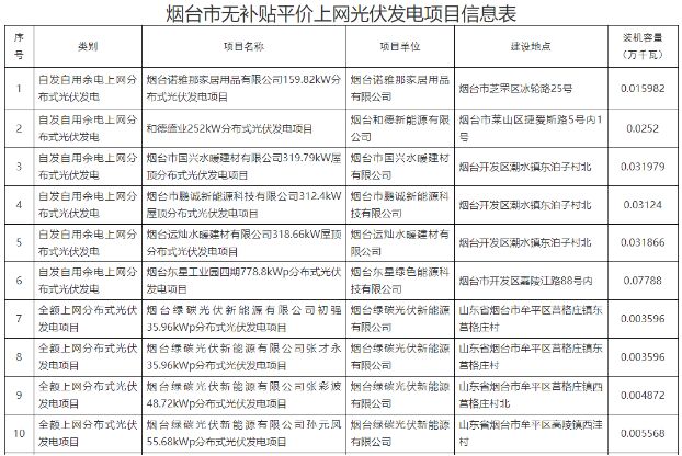 1月6日,煙台市發改委發布光伏發電項目平價上網確認公告,共21個項目,159.82kW。 詳情如下: 按照山東省發展改革委、省能源局《關於推進風電、光伏發電無補貼平價上網項目建設的通知》(魯發改能源〔2019〕367號)有關要求,經審核煙台諾雅那家居用品有限公司159.82kW分布式光伏發電項目等21個項目符合平價上網條件,現予以公布。
