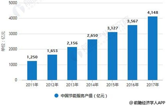 jienengfuwuxingyejibengaikuangfenxi。jienengfuwuxingyeyigezhongzhuanyexingdejienengfuwugongsiweizhuti,yinengyuanxiaofeizheweikehu,bangzhukehujiejuejienengyunyinggaizaodejishuhezhixingwenti,shixiandaifuwuyedezhongyaozuchengbufen。 節能服務項目主要分布在建築、工業和交通運輸領域,接受節能服務的目的在於減少能源消耗、提高能源使用效率、降低汙染排放等。 中國節能服務產業產值分析預測 據前瞻產業研究院發布的《節能服務行業市場前瞻與投資戰略規劃分析報告》統計數據顯示,2017年中國節能服務產業產值達4148億元,全國從事節能服務的企業6137家,行業從業人數68.5萬人,合同能源管理投資形成年節能能力超過3800萬噸標準煤,年減排二氧化碳突破1億噸,節能服務產業繼續保持了良好發展勢頭。預計2018年我國節能服務業總產值將達到4688億元,未來五年(2018-2022)年均複合增長率約為13.35%,預測到了2022年我國節能服務業總產值將達到7740億元。