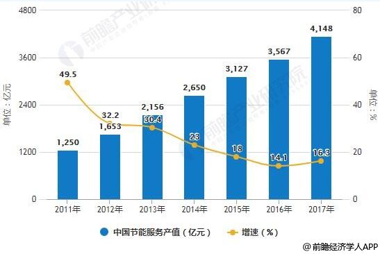 2011-2017年中國節能服務產值統計及增長情況