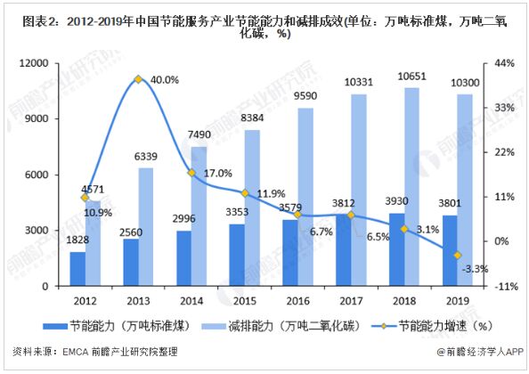 2017年1月,國務院印發《“十三五”節能減排綜合工作方案》,到2020年,全國萬元國內生產總值能耗比2015年下降15%,能源消費總量控製在50億噸標準煤以內。全國化學需氧量、氨氮、二氧化硫、氮氧化物排放總量分別控製在2001萬噸、207萬噸、1580萬噸、1574萬噸以內,比2015年分別下降10%、10%、15%和15%。全國揮發性有機物排放總量比2015年下降10%以上。 “十三五”結束後馬上迎來“十四五”,節jie能neng作zuo為wei國guo家jia長chang期qi發fa展zhan方fang針zhen,前qian瞻zhan認ren為wei國guo家jia對dui能neng源yuan消xiao耗hao的de控kong製zhi力li度du將jiang越yue來lai越yue大da,結jie合he節jie能neng創chuang新xin能neng力li的de提ti高gao,節jie能neng服fu務wu行xing業ye的de節jie能neng能neng力li也ye將jiang隨sui之zhi加jia強qiang。2019年EMCA的數據顯示,我國節能服務產業節能能力從2012年1774.46萬噸標準煤增長到3801萬噸標準煤。預計在2025年,我國節能服務產業節能能力將超過5727萬噸標準煤。