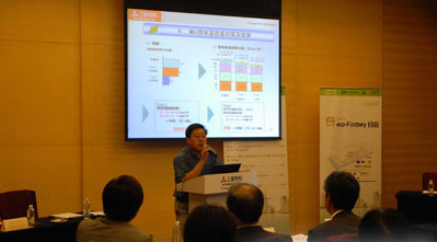 三菱電機的田中誠也就“三菱工廠節能管理技術”提出“eF@ctory”這個整合解決方案。它通過構築工廠設備無縫通訊結構,可以解決製造業麵臨的如何迅速響應需求變化、提高運轉率、縮短開發周期、改善質量、降低成本等問題,實現生產現場的信息化並利用信息係統活用其數據,為提高整體生產力做出貢獻。