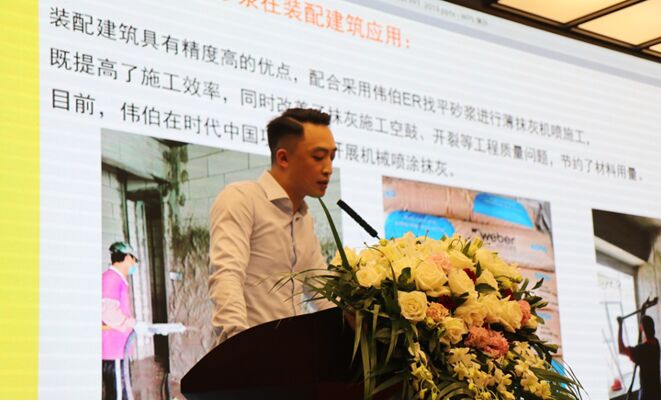 論壇伊始,聖戈班偉伯(廣州)建材有限公司高級經理雙飛探討了裝配式建築輔材及機械化施工工藝。